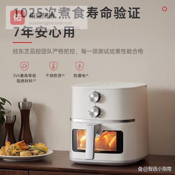 它的大视窗设计让烹饪过程一目了然,随时可以观察食物状态。5升的容量基本够用,能满足4到6人家庭的需求,聚会时也挺方便。操作方面,双旋钮调温控时直观,范围在80-200℃,时间最多60分钟,调节简单,用起来挺顺手。