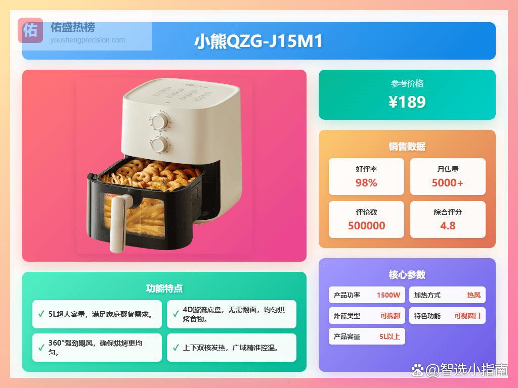而且现在空气炸锅功能也越来越强大,什么蒸汽嫩烤、智能菜单,感觉都能直接当个小烤箱用了。我自己也用过好几款,各有各的特点,确实有些用起来顺手,有些就差点意思。总的来说,空气炸锅绝对是个值得入手的厨房好物,让做饭变得更简单快捷。至于空气炸锅选哪款好?好用吗?绝对是好用的,就看你能不能选到适合自己的那一款了。接下来我整理了10款口碑不错的,大家可以看看。
