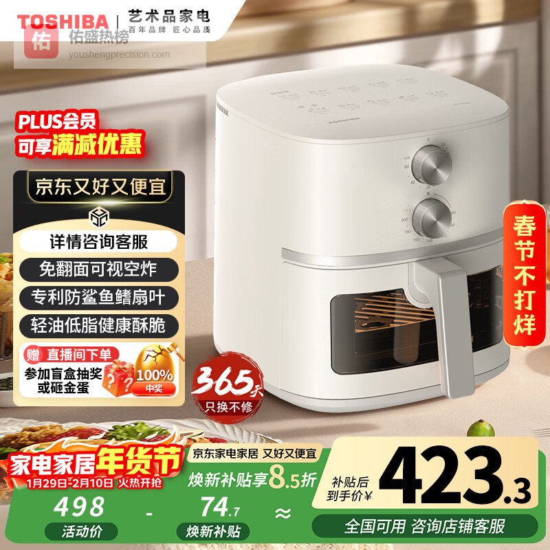 东芝(TOSHIBA)二代旋风底盘 空炸鲨鱼鳍扇叶 低油轻脂不粘 双旋钮操作 5L空气炸锅AF-50KHUC¥