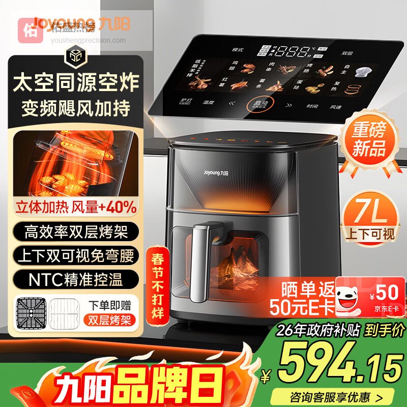 九阳(Joyoung)变频焱烤双层烤空气炸锅 NTC精准控温 家用实用7L大容量 上下双可视大视窗 蒸烤炸一体KL70-V8¥