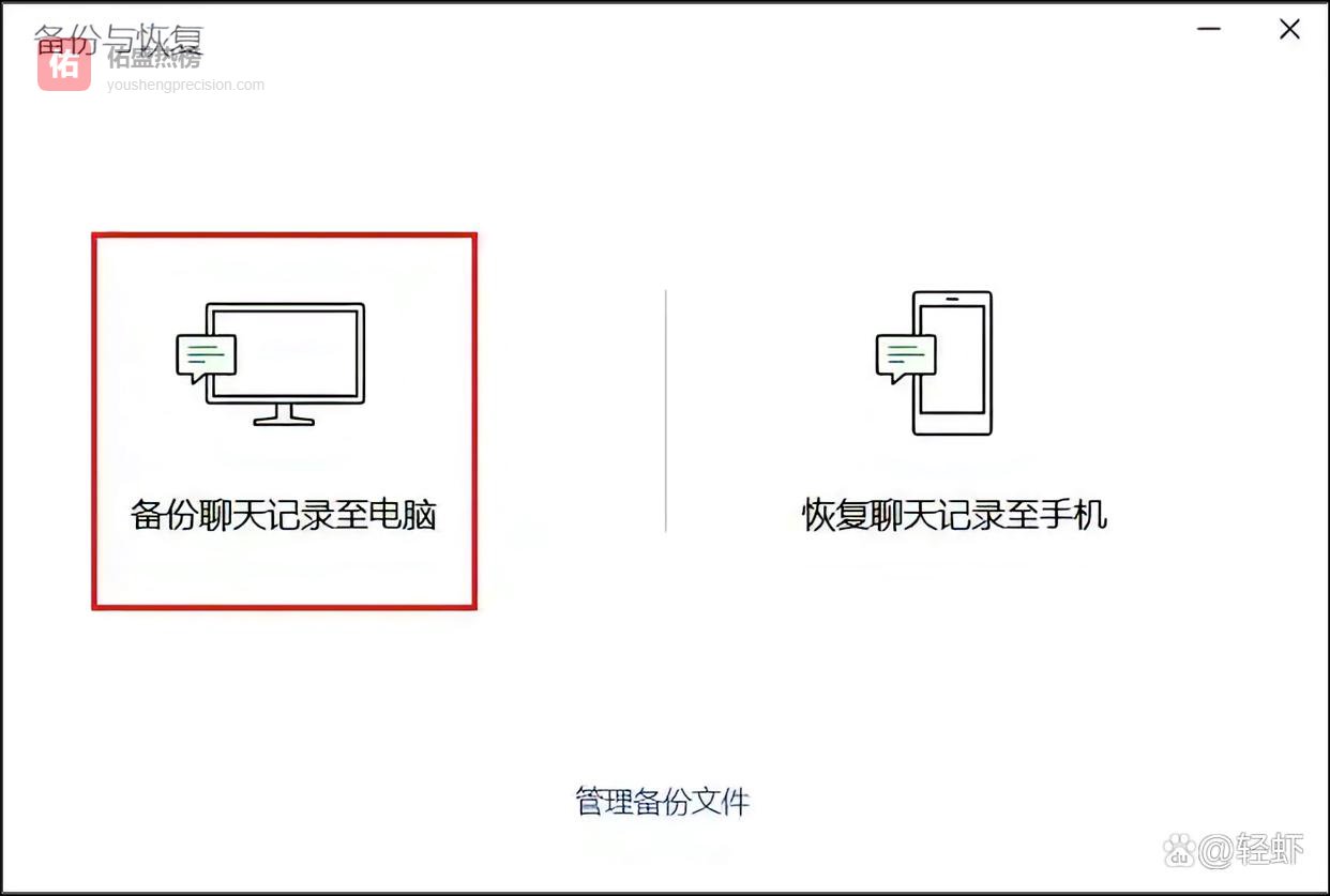 功能一句话总结:微信电脑版可将聊天记录备份到电脑,但备份文件加密,只能自己恢复,无法转发或打印。