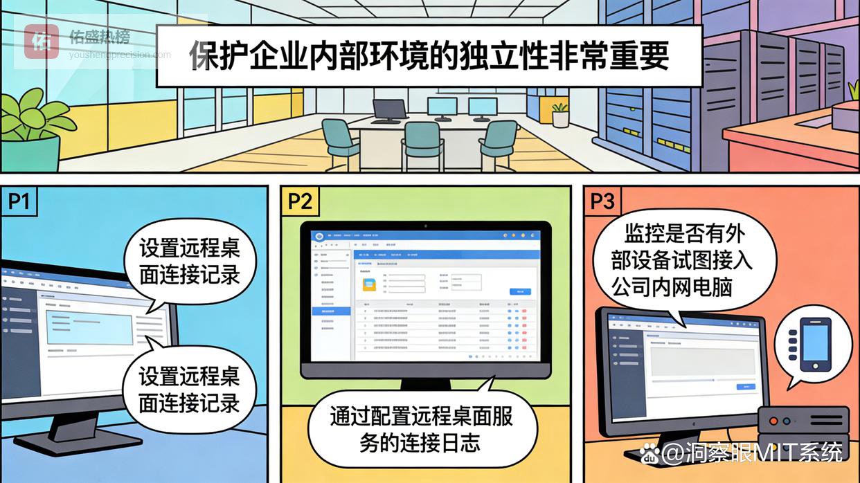 六、 设置远程桌面连接记录在内网环境下,通过配置远程桌面服务的连接日志,可以监控是否有外部设备试图接入公司内网电脑。这对于保护企业内部环境的独立性非常重要。