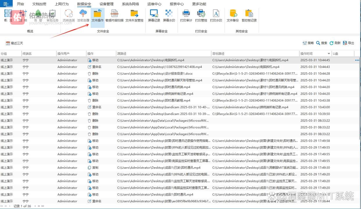文件操作记录: 实时监控文件的复制、移动、删除及修改行为,确保局域网内每一份重要资产的流向都清晰可追溯。
