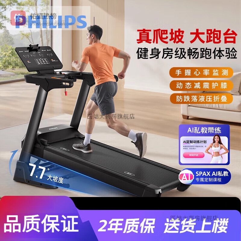【品牌专营】飞利浦跑步机家用小型超健身房专用款新款电动爬坡跑步机黑色¥