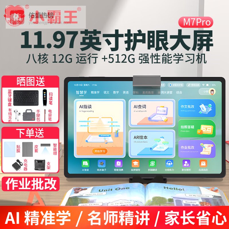 小霸王M7八核智能学习机11.97英寸平板电脑儿童小学生初中高中教材同步Ai英语学练机一体神器点读早教机 M7Pro12G+512G【学练一体+作业批改】 小初高全科课程AI精准学【11.97英寸护眼大屏】¥