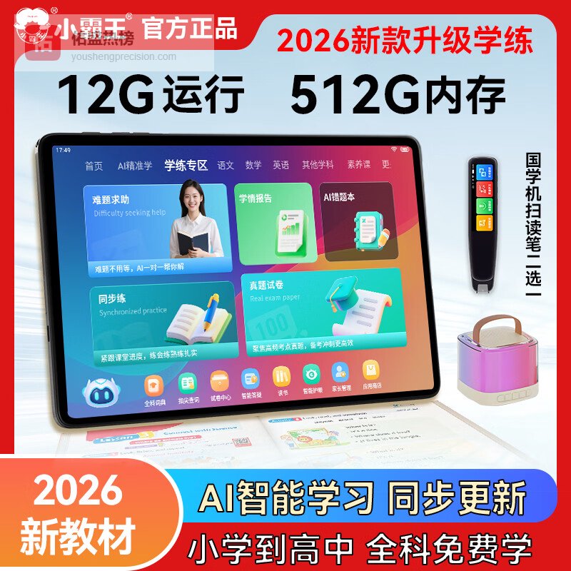 推荐理由:这款学习机配备了11英寸AG护眼屏,采用防反光技术,有效减少屏幕眩光,减轻眼睛疲劳,保护视力,学习更舒适。它支持同步教材、同步辅导、同步视频和同步点读,孩子可以一站式学习,内容跟学校教材完全同步,提升学习效率,让孩子复习更有针对性。