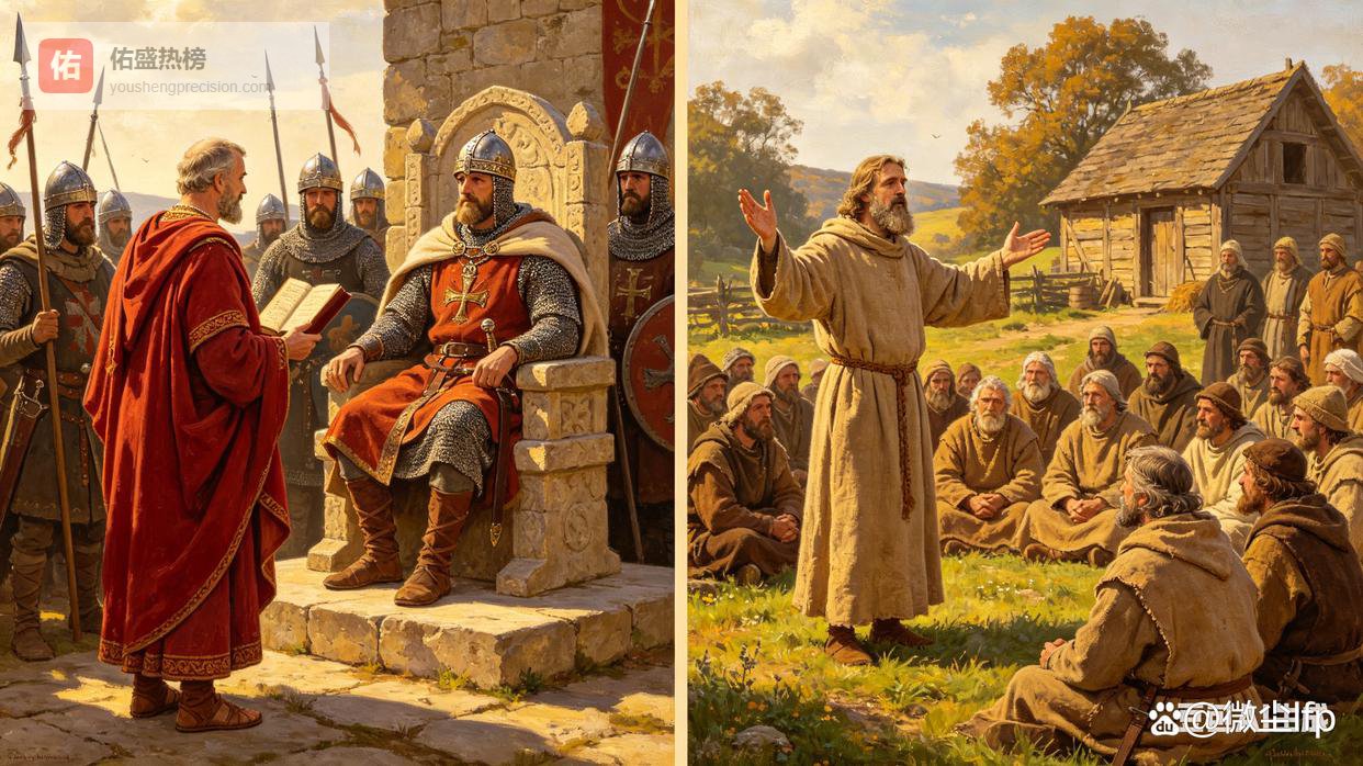 僧侣剃发式差异同样是理念博弈的缩影:罗马教会僧侣采用头顶圆形剃发,象征基督荆棘冠,彰显对罗马传统的遵从;凯尔特教会则坚持前额剃发,固守本土宗教标识,拒绝迎合罗马礼仪。此外,洗礼流程、圣餐礼细节等方面,双方也存在明显不同。罗马教会推崇统一严谨的礼仪流程,凯尔特教会则保留简化灵活的本土仪式,这些形式差异,本质上是双方对信仰传承、教会权威的理念对抗。