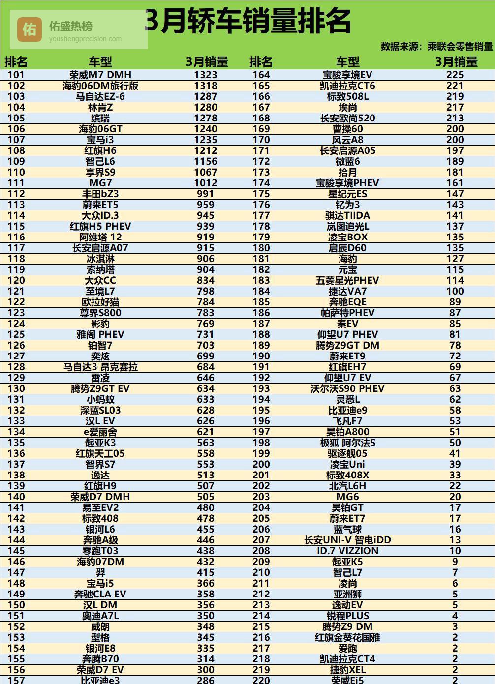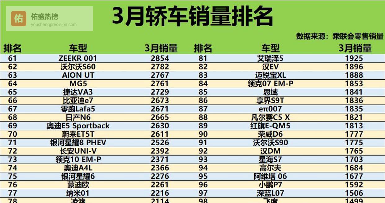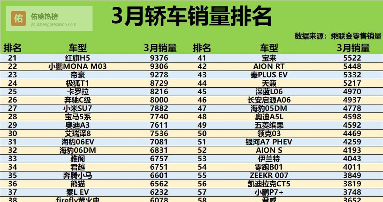 燃油车胜!3月轿车销量前20仅6款新能源