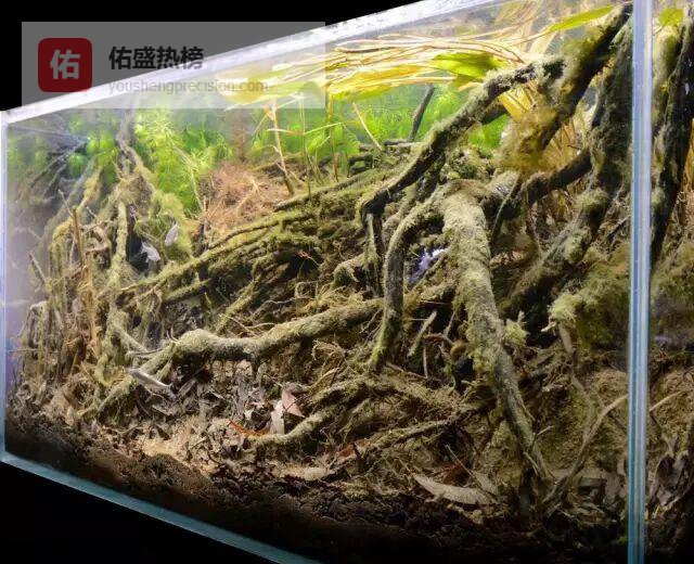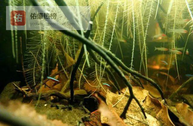 造景核心是黑砂+黑水+整棵倒伏木;底部铺20 cm以上腐叶,再种几株黑木蕨。短鲷、神仙、红绿灯在这里会褪去鲜艳色彩,像被夜色吻过——别担心,这是它们自我保护的本能。若想拍“幽灵船”效果,可加一盏蓝光LED灯。