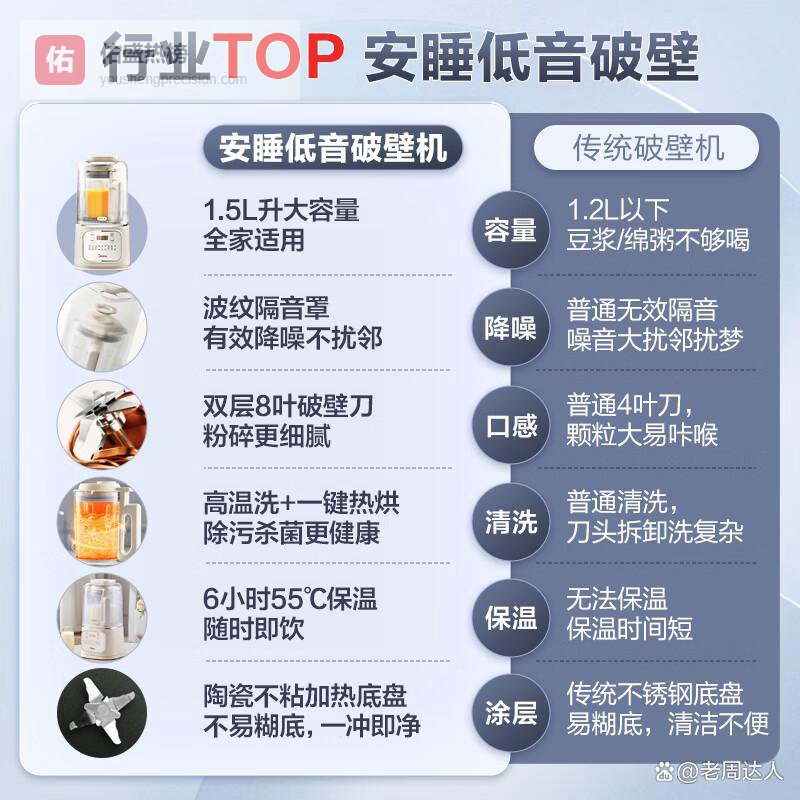 选购建议:如果你家里也有小朋友或者老年人,对噪音敏感,这款破壁机绝对是首选。再就是容量大小,如果你家厨房小,这款小体积的设计也超合适。还有,如果你喜欢喝豆浆,它的磨粉功能也很赞,而且还有儿童食谱和代餐粉的功能,非常适合注重健康饮食的你们。总之,这款破壁机性价比高,功能全面,值得入手!