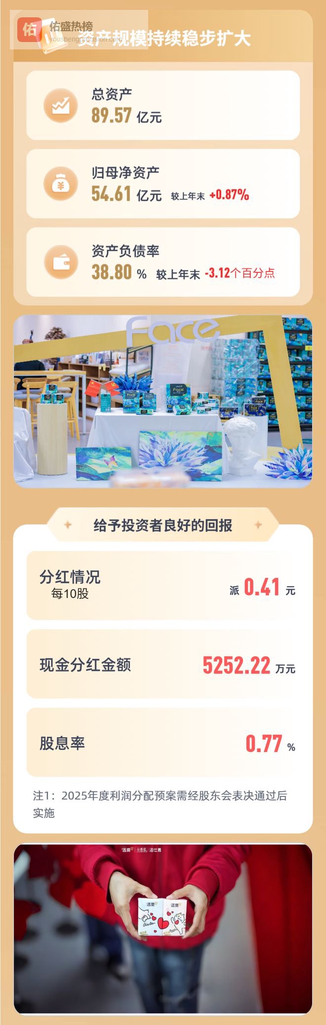 同时,公司坚持创新驱动,2025年研发投入达1.73亿元,一方面对核心品类迭代升级,基于用户痛点推出点断式湿厕纸、护鼻乳霜纸、易撕型分享手帕纸等产品,持续打磨产品品质;另一方面积极拓宽品类边界,精准挖掘细分场景需求,成功研发香氛洗衣液、马桶免刷清洁剂、厨房厨电清洁剂等产品,为用户提供“生活用纸 家清个护”深度融合的全场景生活解决方案。