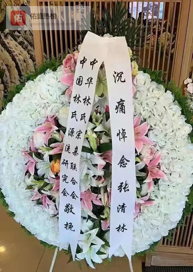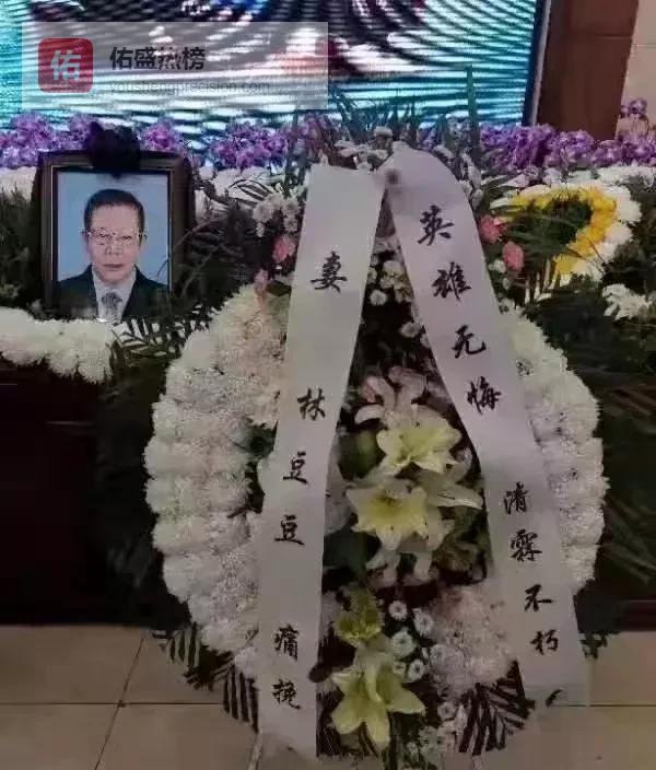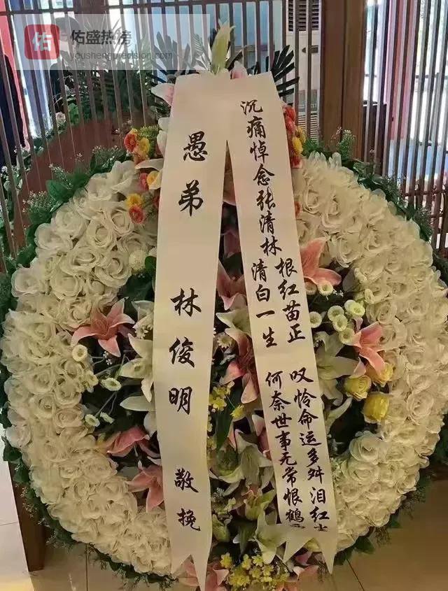 花圈上的缎带写着八个字:“英雄无悔,清霖不朽”,落款是“妻林豆豆痛挽”。