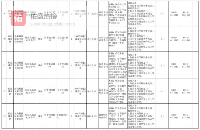 本次公开考核面向全国招聘2026年7月31日前取得国民教育相应学历和学位,并完全符合附件1《四川省绵阳科技城新区2026年上半年公开考核招聘事业单位工作人员教师岗位和条件要求一览表》(以下简称《岗位和条件一览表》)相关岗位条件要求和本公告其他要求的人员。未在规定时间内取得有关证书的,不得进入下一环节或不得聘用,责任由应聘人员承担。
