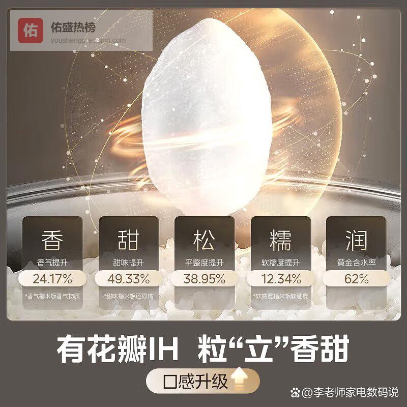 这款是我的自用款,被称为“千元档全能王”,精准击中爱煮饭又怕麻烦的家庭。5L大容量足够5-8人聚餐,冬天煮一锅热腾腾的小米粥暖胃又解馋。核心亮点是花瓣IH加热技术,1300W大火力让热量包裹每粒米,实测陈米也能煮出新鲜稻香,米饭颗颗饱满不夹生。青瓷鼎釜内胆是另一大加分项,高温烧制抗菌率达99%,耐磨耐刮,钢丝球刷洗都不怕,洗完亮晶晶像新锅。12种智能菜单超贴心,煮饭、炖肉、做甜品一键切换,厨房小白秒变厨神。目前支持国家补贴,到手价亲民,适合预算有限或常换花样的家庭。