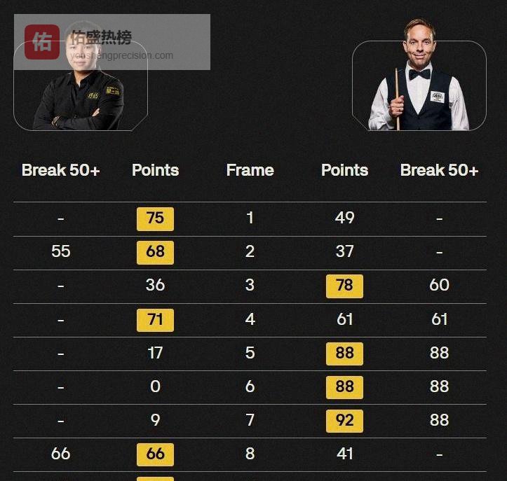 可韦克林不是摆设,连掀三局,打出91分、76分、118分的反击,硬把比分拉到4-4,现场温度像被骤然拧低