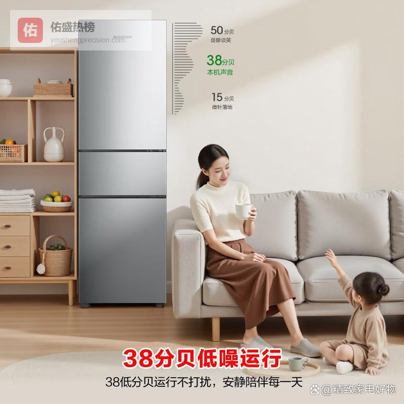 【低噪运行体验】即使每天使用,冰箱的运行声音也只有38分贝,非常静音。无论放在卧室还是客厅,都不会打扰到你休息或谈话,让家庭环境更安静、更舒适。