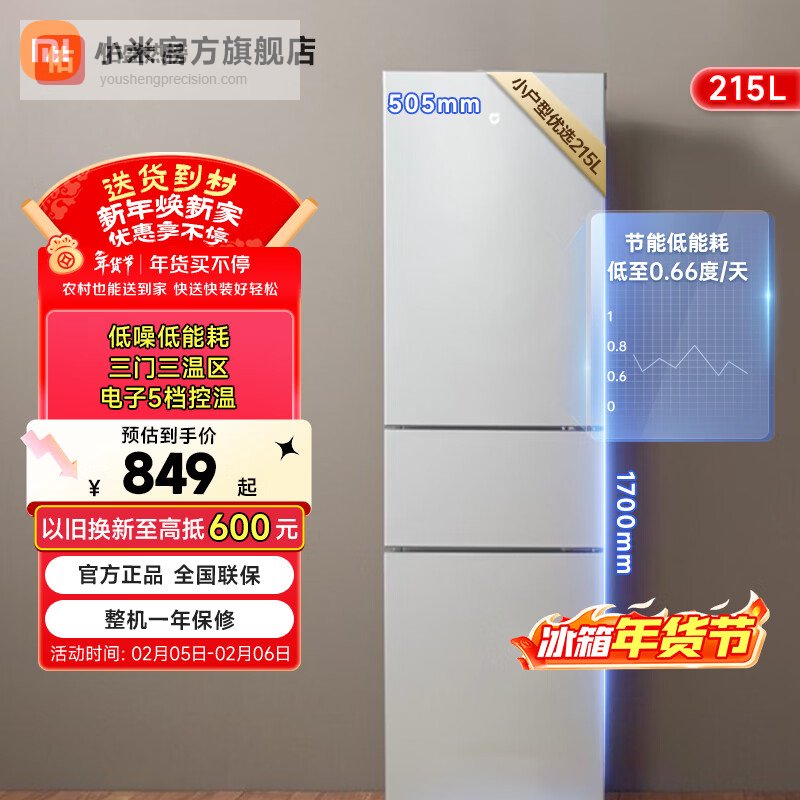 米家小米215升三门小型家用电冰箱 三门三温节能安静运行冷冻冷藏 租房宿舍 BCD-215MDM03¥
