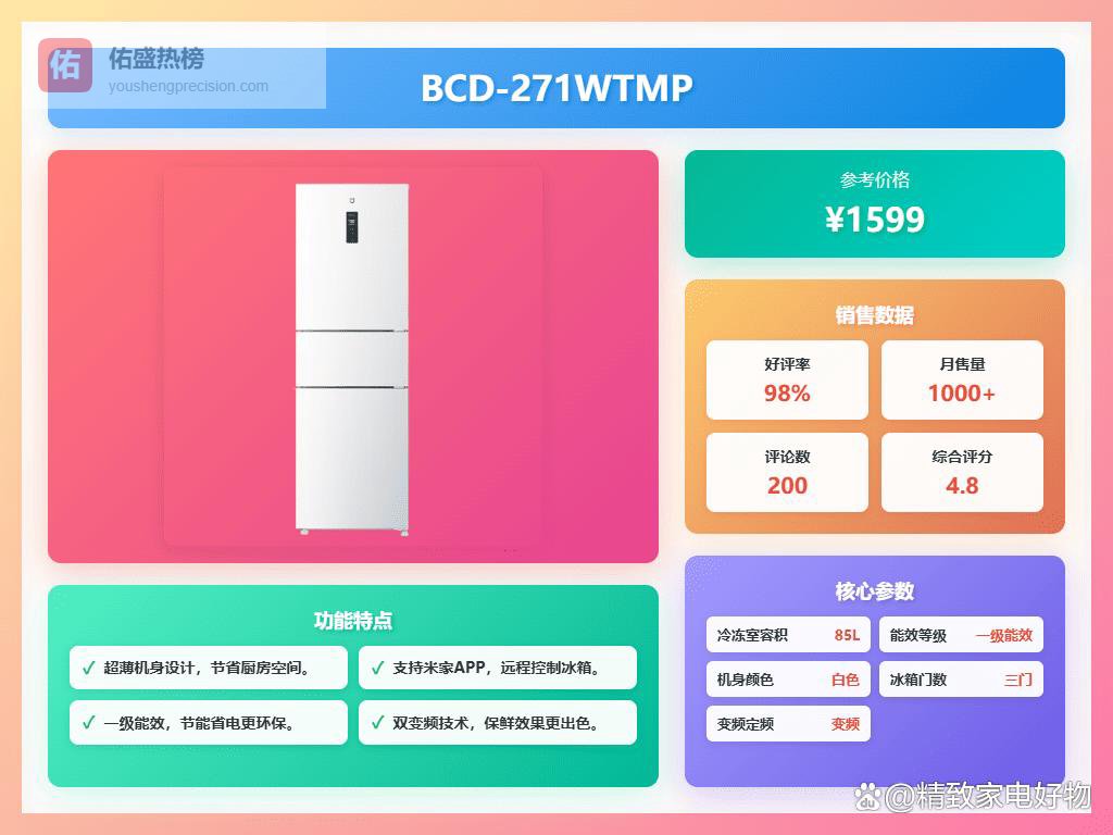 最近不少朋友问我“三门冰箱哪个品牌好?推荐十大品牌,节能又实用!”这个问题,说实话,我也一直在关注。毕竟现在生活节奏快,食材保鲜太重要了,而且冰箱这东西一用就好几年,得好好选。现在市面上三门冰箱选择是真的多,看得眼花缭乱,但是只要抓住节能和实用这两个点,就不用担心踩坑。