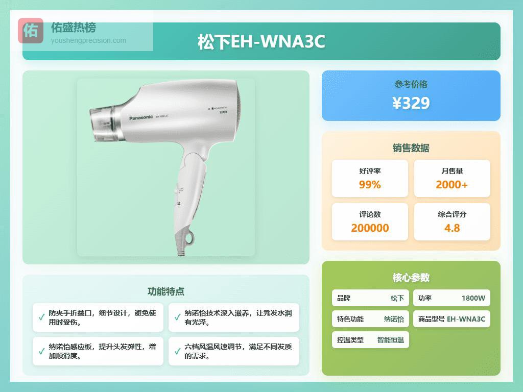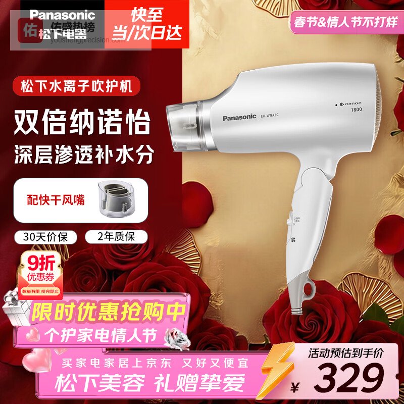 松下(Panasonic)纳诺怡水离子护发吹风机家用大功率速干电吹风不伤发送女生新年情人节礼物年会奖品白色EH-WNA3C¥