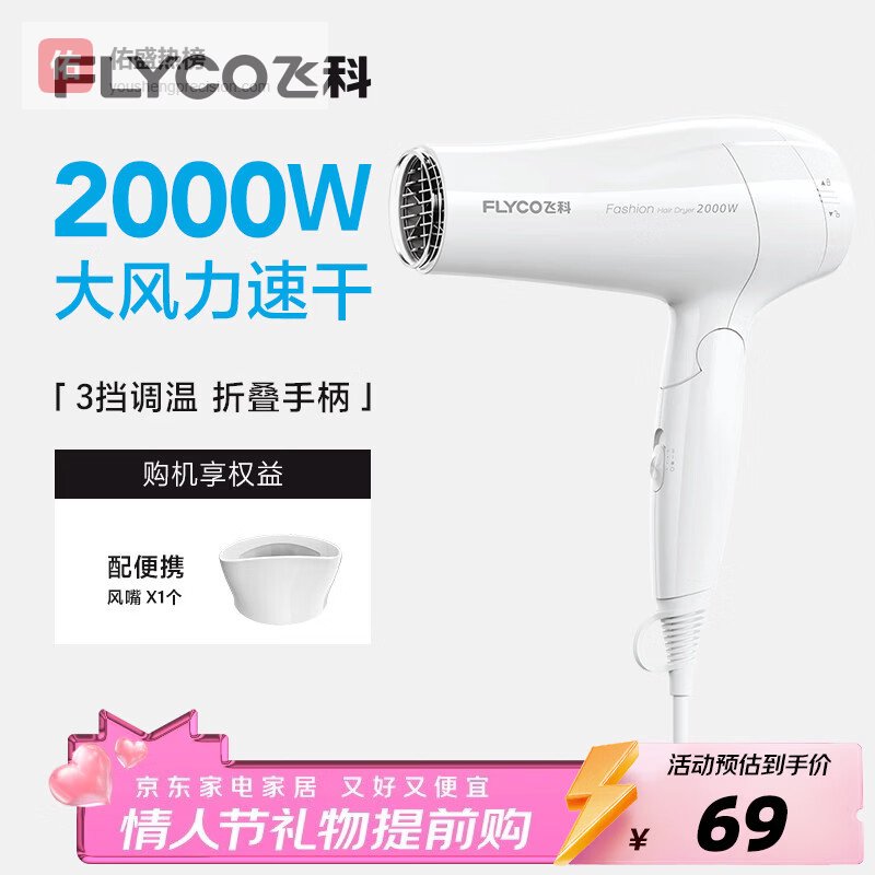 飞科(FLYCO)电吹风机家用发廊大功率2000W速干恒温便携可折叠白色FH6232¥
