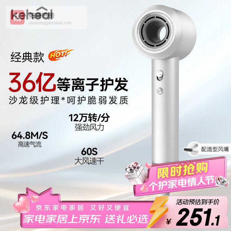 科西(KEHEAL)高速吹风机36亿等离子护发发电吹风家用负离子护发速干吹风筒过年情人节礼物 HC5银月白¥