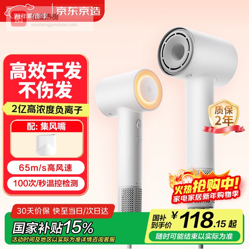 京东京造智能高速吹风机Lite白 负离子吹风机家用静音大功率不伤发宿舍电吹风筒生日礼物女新年礼物男¥