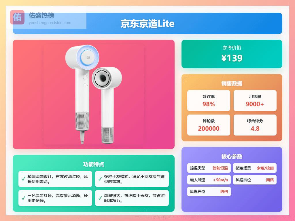 现在市面上吹风机品牌那么多,功能也是五花八门,看得人眼花缭乱。要说安全,恒温、负离子这些功能肯定要考虑,能减少对头发的损伤。至于性价比,也不能光看价格,还得看使用寿命和效果。毕竟谁也不想买个用不了多久就坏掉,或者吹完头发毛毛躁躁的吹风机。接下来我整理了10款口碑不错的,大家可以看看。