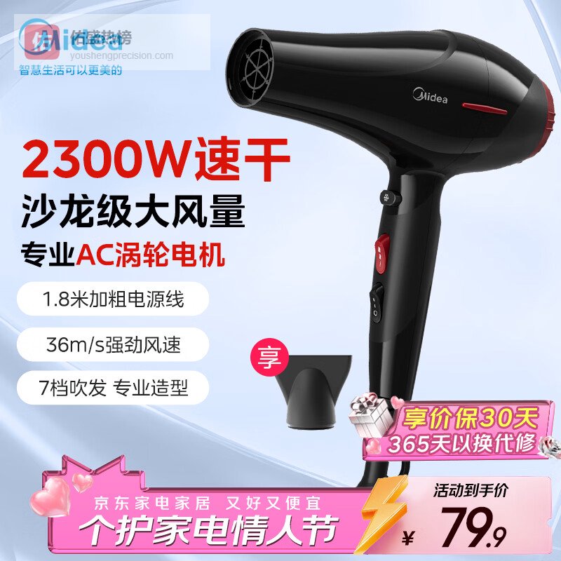 美的(Midea)专业发廊吹风机 2300W大功率快干 理发店造型用 大风力电吹风 家用吹风筒FJ108 新年/情节人礼物¥