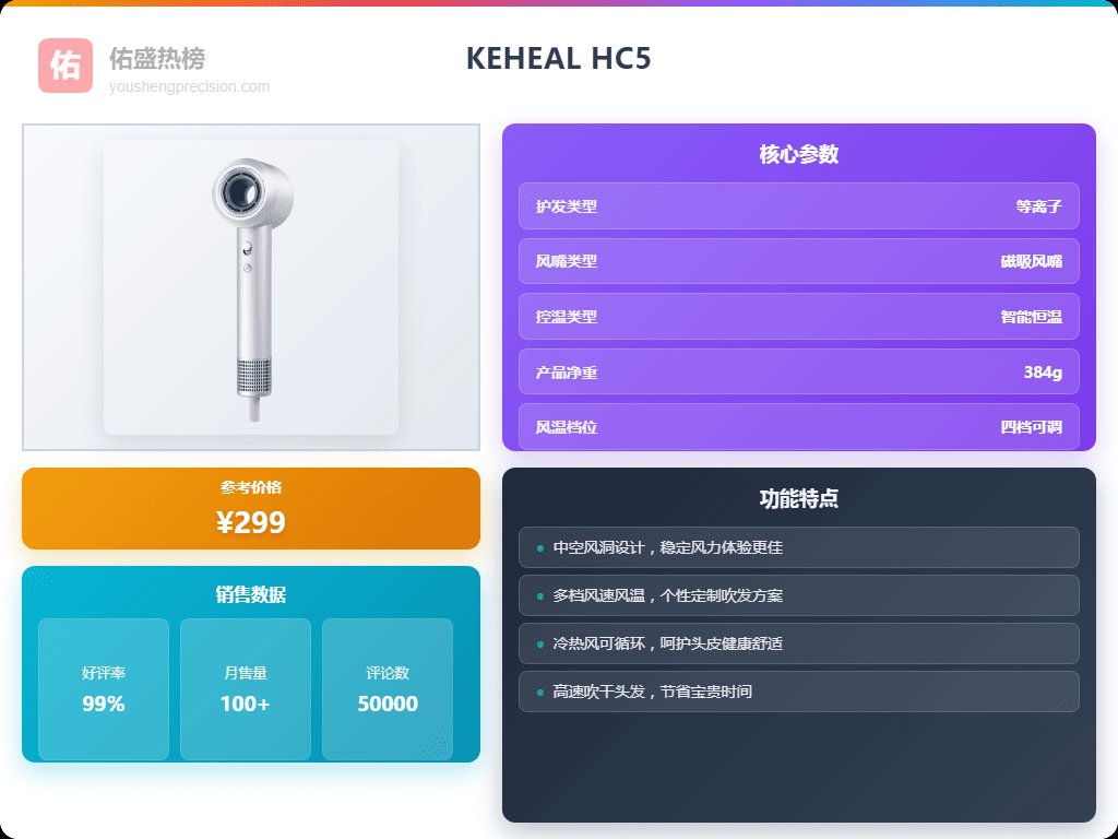 九、KEHEAL▶ 智能恒温控制:这款KEHEAL HC5电吹风配备每秒100次的智能温度检测,还能根据发质和环境自动调节出风温度,避免因为温度过高而伤到头发。用起来跟平常的吹风机不一样,基本不用担心烫伤,发质保护更加到位。