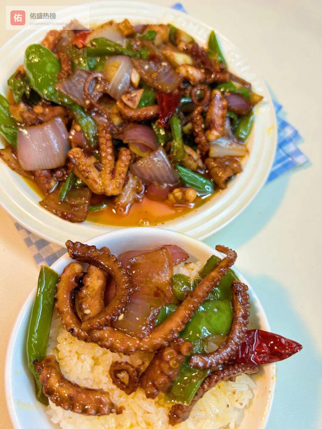 ❌ 先炒配菜后放鱿鱼(变成鱿鱼橡皮擦)