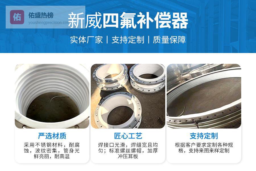 优异的密封性能,有效防止介质泄漏良好的柔韧性,能够适应复杂的管道布局安装维护简便,降低使用成本在锂电池正负极材料输送系统中,衬四氟补偿器同样发挥着重要作用。其耐高温性能能够适应材料干燥过程中的高温环境,确保管道系统的安全运行。同时,其平滑的内壁设计减少了材料残留,提高了输送效率。