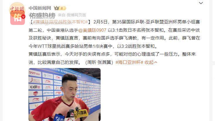 海口亚洲杯的赛场上,张本智和爆冷输给34岁的黄镇廷,全场嘘声四起。