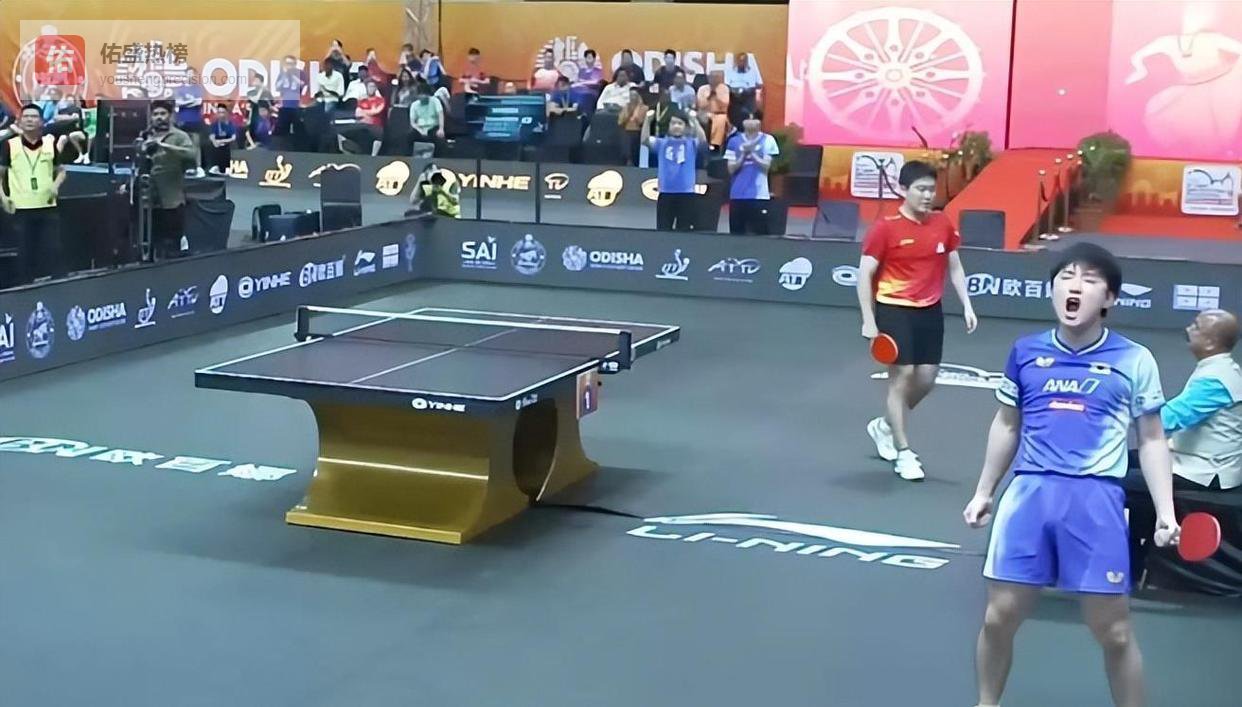 印度亚锦赛上,他得分后对着国乒教练席振臂咆哮。