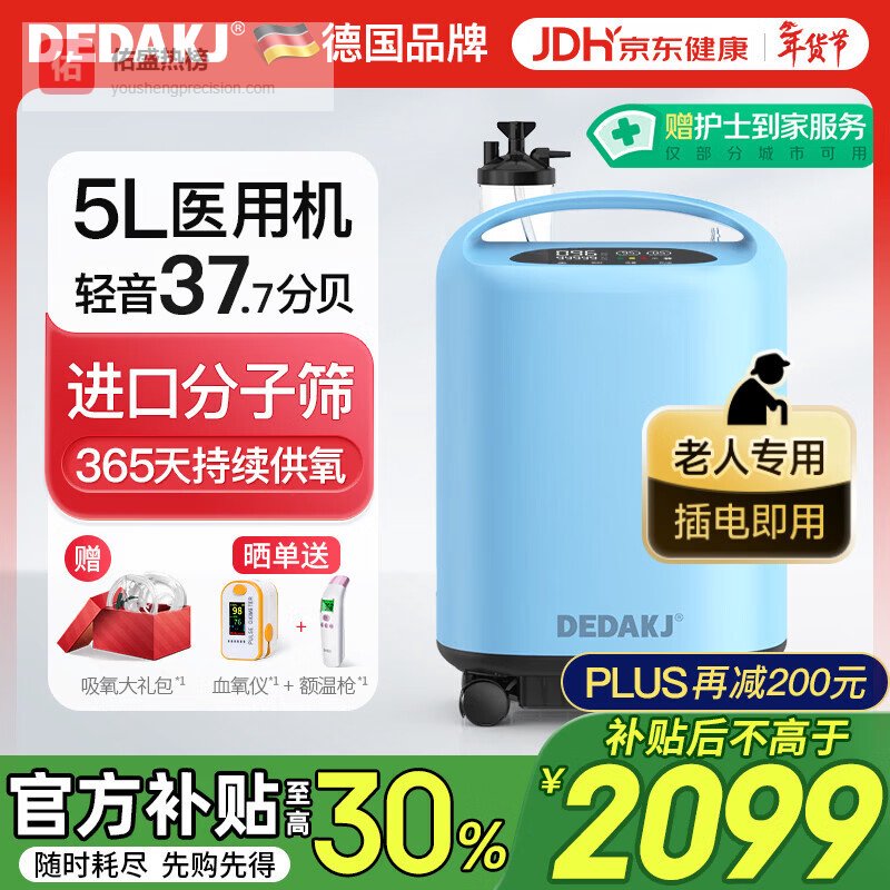 DEDAKJ德国5L升医用制氧机家用老人吸氧机氧气机呼吸带雾化一体机家庭¥