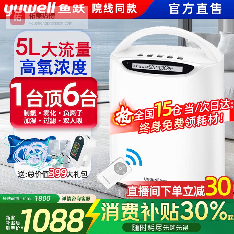 推荐第4款:鱼跃5L家用制氧机雾化吸氧礼包