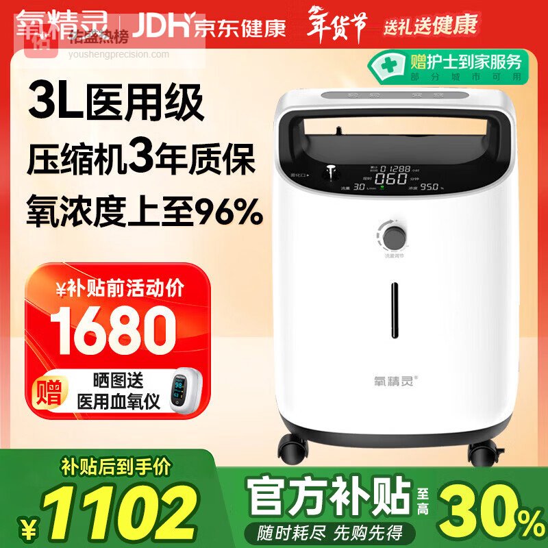 氧精灵3L升医用制氧机家用吸氧机老人专用孕妇便携氧气机323W¥