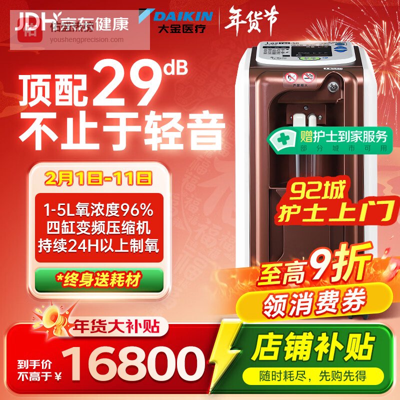 大金(DAIKIN)日系5L升医用制氧机 轻音29分贝四缸变频吸氧机 家用老人氧气机¥
