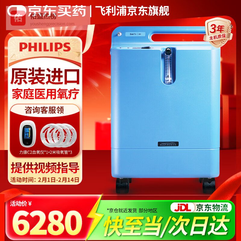 飞利浦5L医用制氧机家用原装进口老人孕妇吸氧氧气机大流量可搭配呼吸机 【原装进口】新款Everflo Q¥