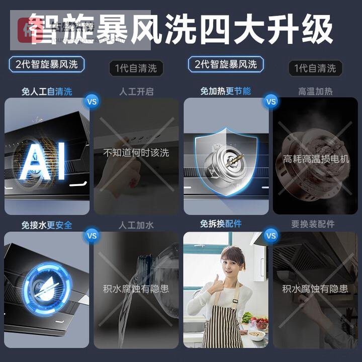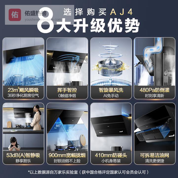 功能介绍:这款油烟机采用飞翼三腔设计,拢烟效果更佳,油烟不易逃逸。26m3/min的爆炒风量,搭配1000Pa的最大静压,即使烹饪高峰期也能稳稳吸走油烟。智能AI感应系统,能根据油烟浓度自动调节风力,使用更省心。