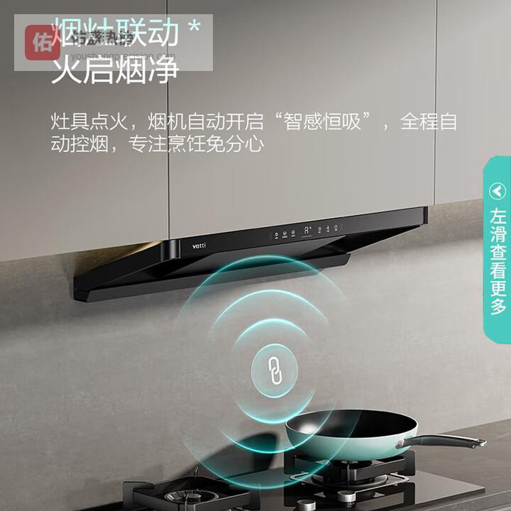 ③智能烟灶联动功能,使用便捷,纳米疏油涂层易