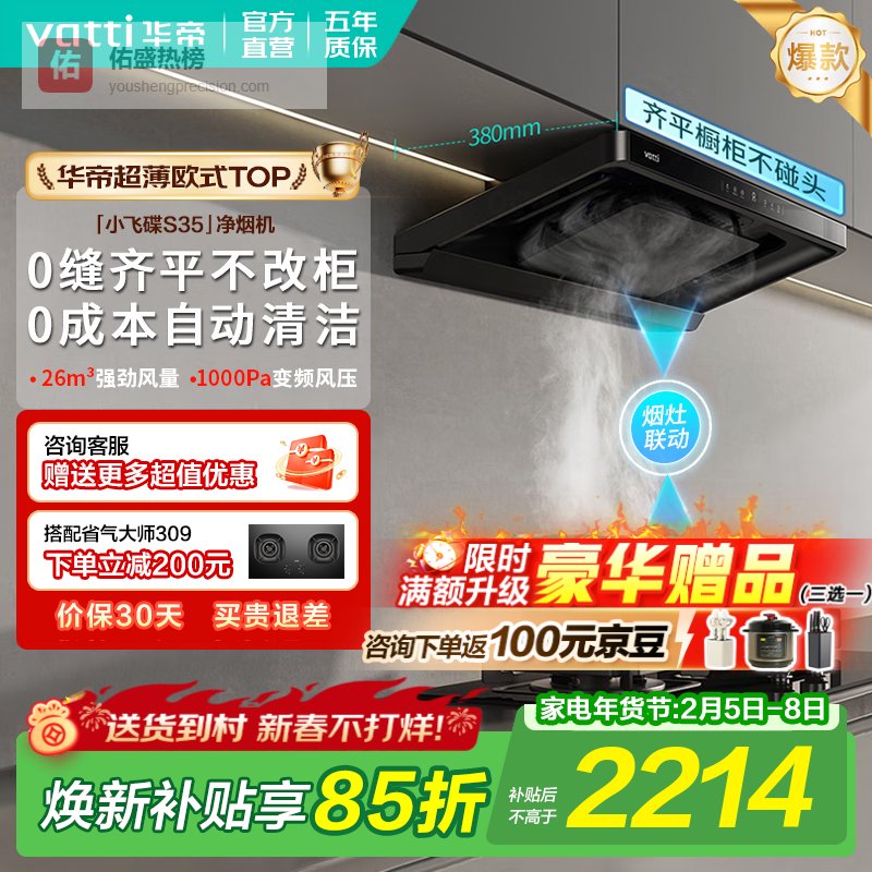 华帝油烟机【小飞碟S35/S36M】欧式顶吸抽吸油烟机26/28大吸力家用自清洁一级能效上门安装国家补贴 【爆款】S35|26大风量/自动洗¥