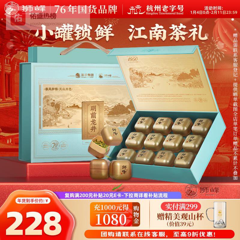 狮峰牌绿茶明前龙井茶叶特级150g小罐新年年货礼盒装送礼送老丈人¥