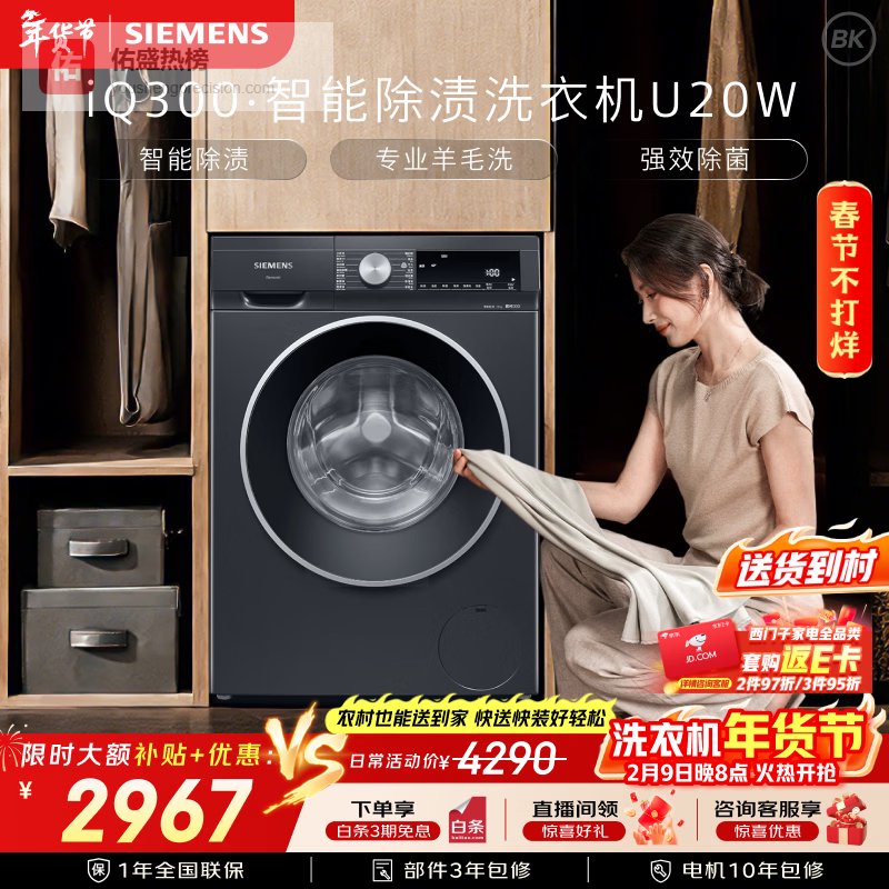 西门子(SIEMENS)iQ300 10KG大容量 全自动滚筒洗衣机 智能除渍 强力防过敏 专业除菌除螨洗 WG52A1U20W 国家补贴¥
