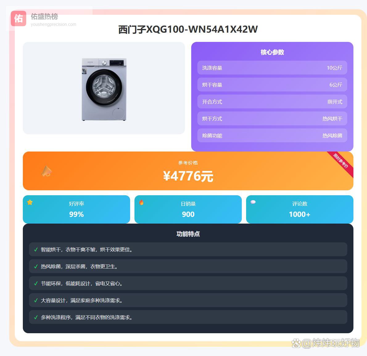 选择这款,意味着你将洗衣机的“护理”功能摆在了和“洗净”同等甚至更重要的位置。如果你家有婴儿、易敏人群,或者你本人拥有大量需要精心打理的高档衣物(如真丝、羊毛、羽绒),那么“超氧”技术带来的革命性护理体验,绝对值得投资。它让洗衣机变成了一个专业的“衣物护理中心”。