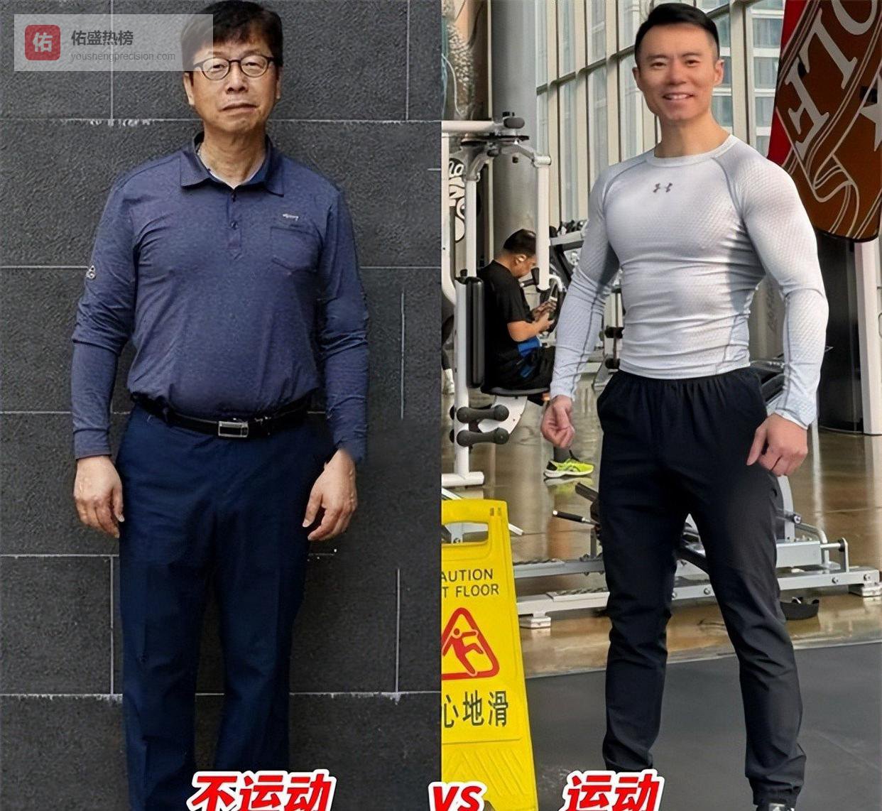 除了脸看起来状态不同,长期不锻炼对体型的改变特别明显。年纪上去后代谢变慢,肌肉也会慢慢减少,如果不锻炼,身体里的脂肪会越来越多,肌肉变得松垮垮的,体型就会变得不好看,整个人也会显得没精神。