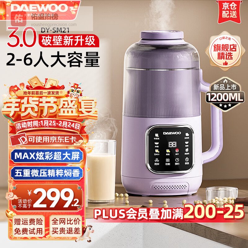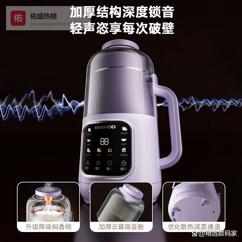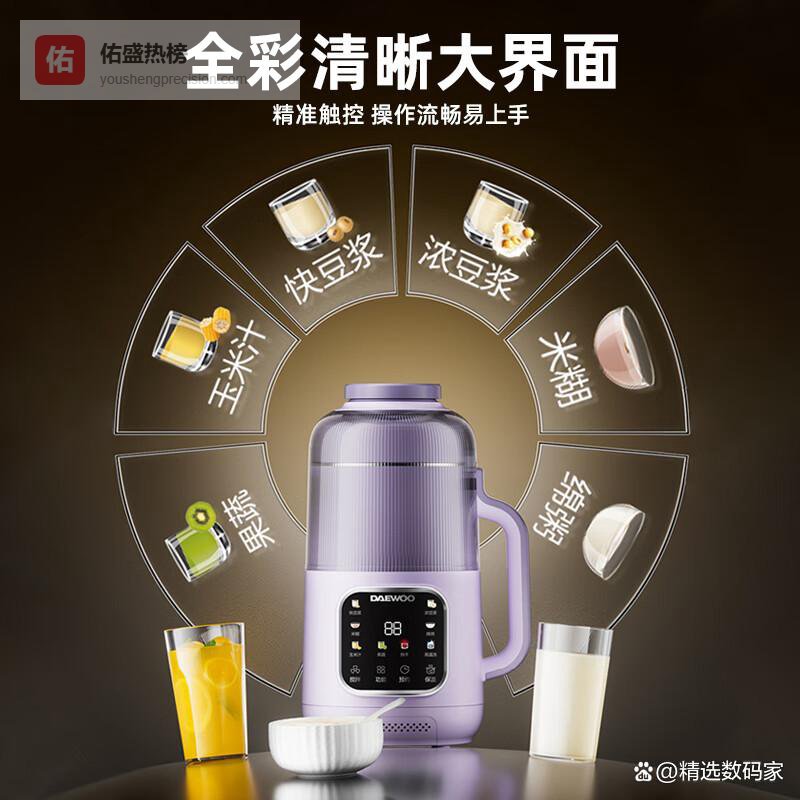 大宇(DAEWOO)【2025新款热销推荐】家用破壁机轻音家用豆浆机料理机全自动免煮免滤五谷杂粮大容量榨汁机SM21 25年1.2L炫彩大屏MAX(紫色)¥
