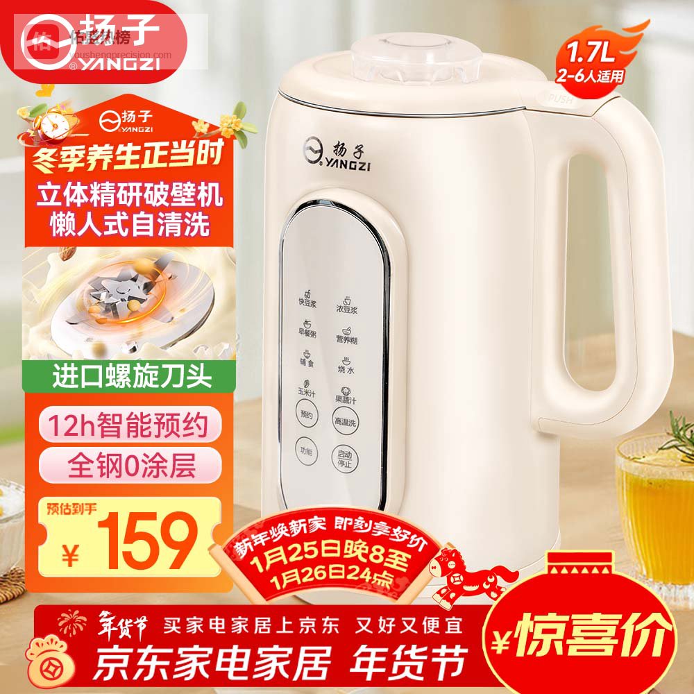 扬子破壁机家用1.7L全自动免煮免滤豆浆机5-6人大容量榨汁机多功能五谷杂粮料理机B-001【抖音同款】¥