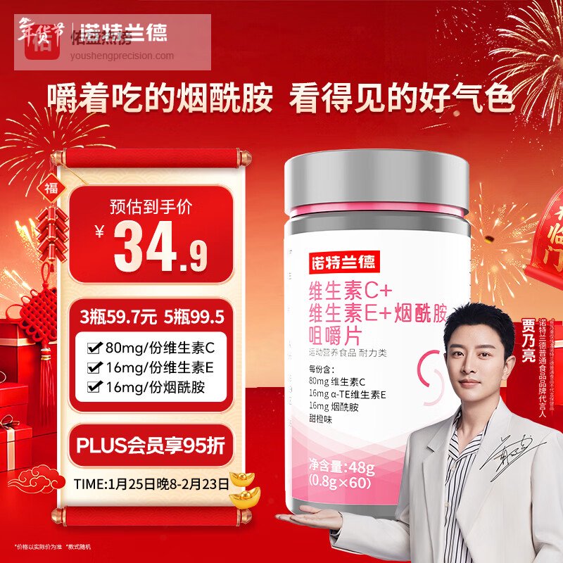 诺特兰德 维生素c维生素e烟酰胺咀嚼片 60片/瓶 复合维生素vc+ve+烟酸¥