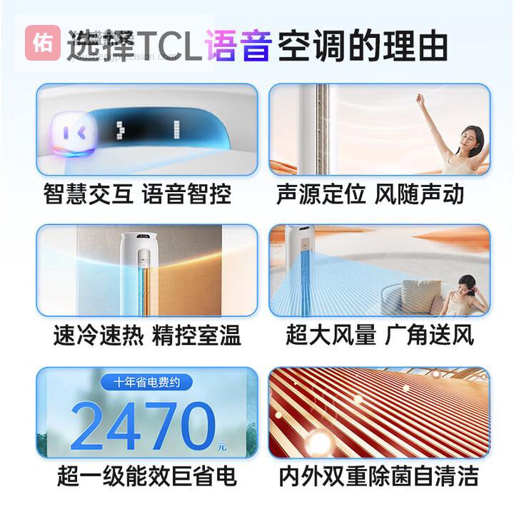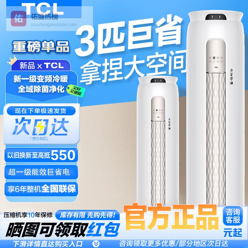 TCL空调小金聆智慧语音立式柜机大3匹/大2匹P新一级能效柔风除菌自清洁圆柱立柜式客厅柜机空调 大3匹 一级能效 智慧语音立柜式适用:28-45㎡¥