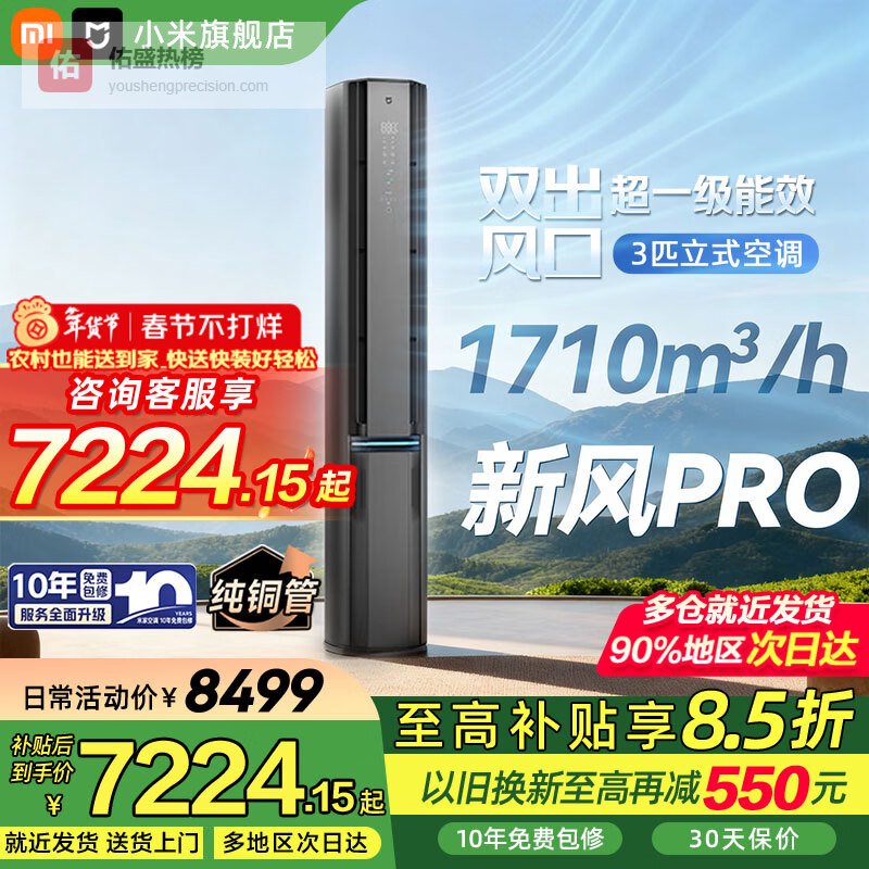 小米(MI)新风空调米家 3匹 超一级能效 新风Pro 人感双出风 变频冷暖 智能互联 圆柱健康立式柜机 3匹 超一级能效 新风Pro 星缎银¥
